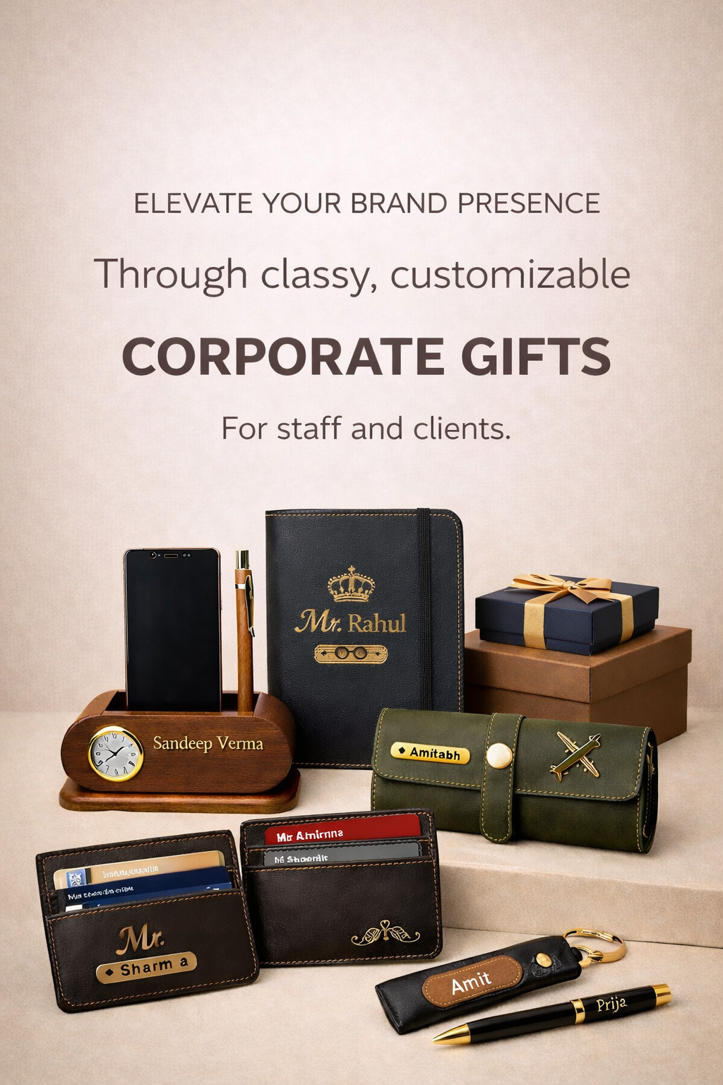Customized Brown Card Holder with Name